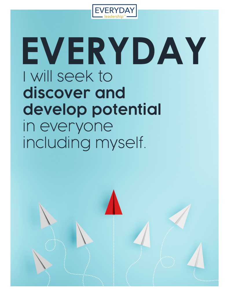 The last statement of that definition could not be more apropos for this chapter. We’ve been walking through the eight commitments of Everyday Leaders, and now we’re going to discuss commitment six: Every day, I will seek and develop potential in others, including myself.