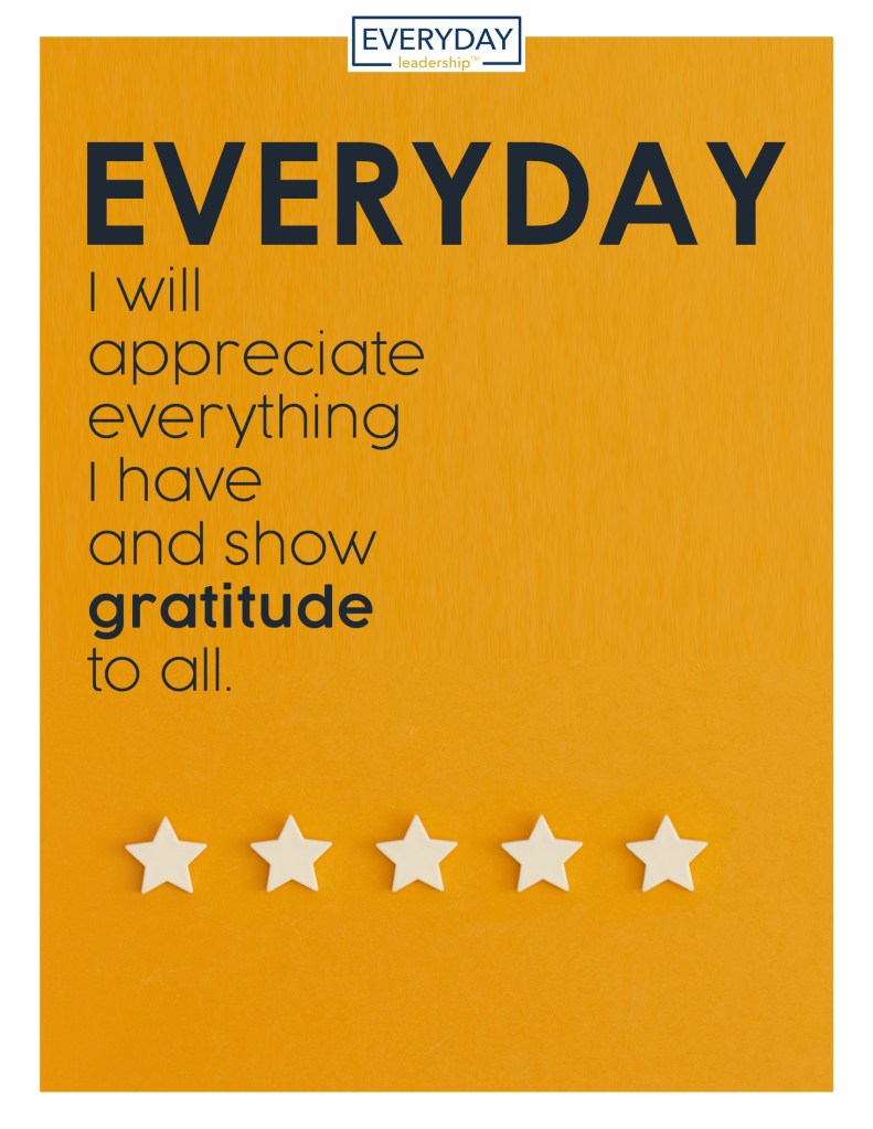As Everyday Leaders, we need to follow commitment number eight: Every day, I will appreciate all that I have and show gratitude to all.